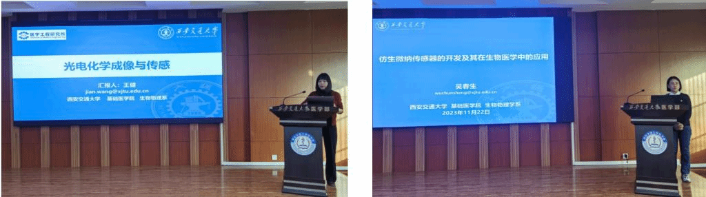 各学院的青年教师代表分别介绍了其在医工交叉领域的研究,生物检测及仪器研究所副所长胡飞、光学检测技术研究所所长张璐分别介绍了课题组精密生物检测和分子诊断PCR仪器的研制及应用、无标记生物光学信息提取等研究,为临床诊断带来了极大的便利。同时,来自基础医学院生物物理系光电化学成像与传感团队王健副教授、生物医学传感与检测团队杜丽萍副教授分别介绍了团队在电分析技术和仿生生物传感技术等领域内的研究思想及取得的主要成绩。上述的研究成果充分展现了医工交叉融合在医疗、生物安全等领域的广阔前景。