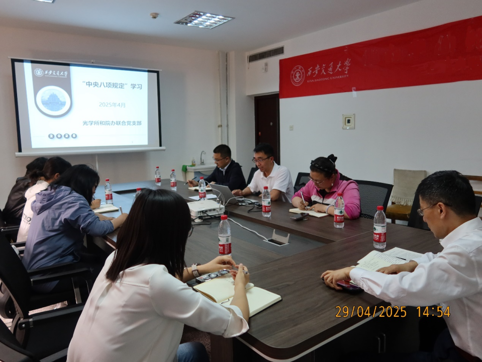 韦学勇总结到,光学所和院办联合党支部的本次学习活动准备扎实,组织有力,对于加深支部党员同志对中央八项规定精神的学习理解和贯彻落实能起到良好促进作用。