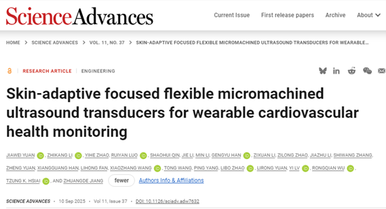 该研究成果以“Skin-Adaptive-Focused Flexible Micromachined Ultrasound Transducers for Wearable Cardiovascular Health Monitoring”为题近日在Science子刊Science Advances《科学进展》上在线发表。成人导航
