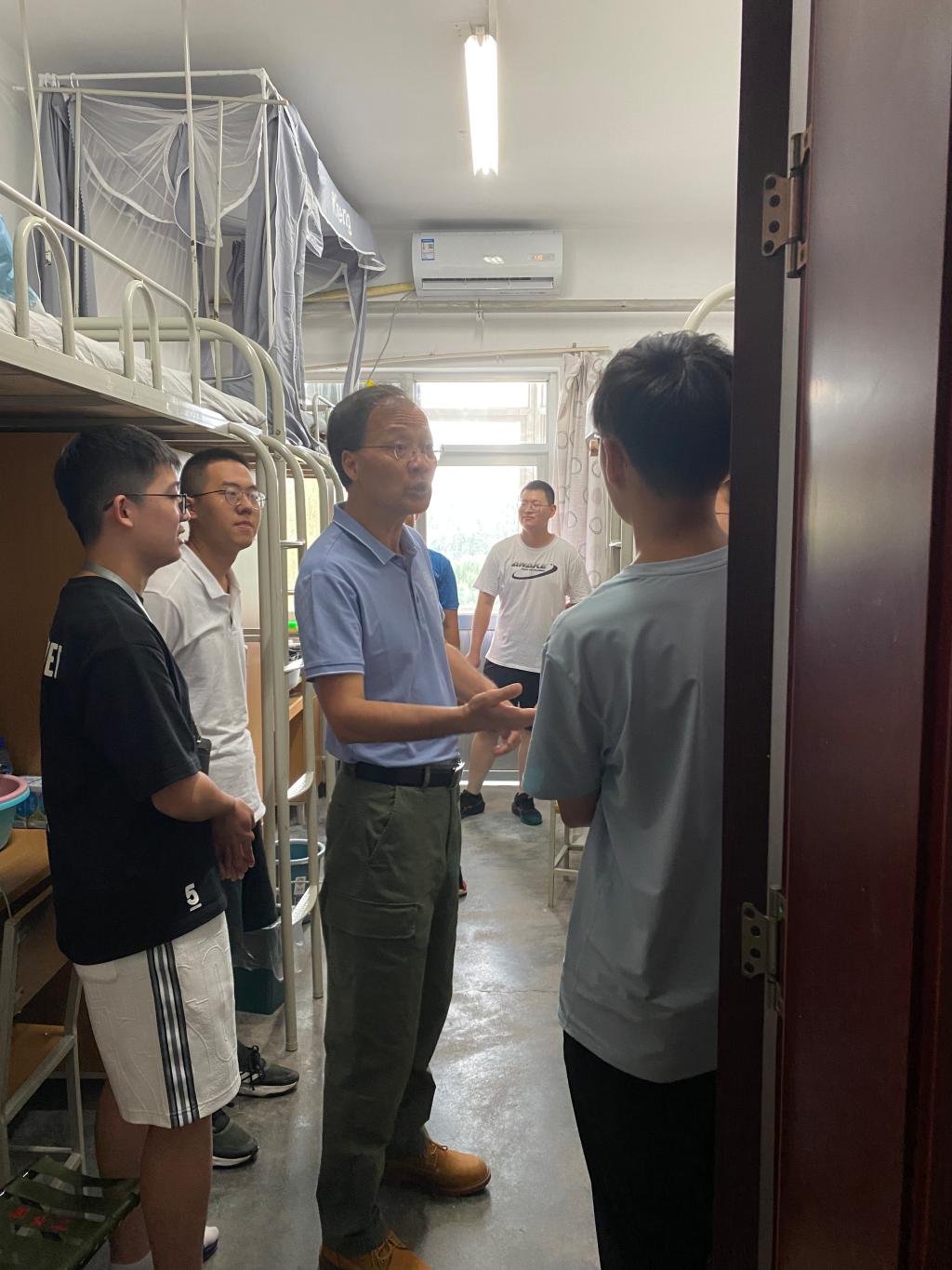 在走访过程中,院领导班子与新生进行了亲切交谈,了解学生的特长爱好、起居习惯等,并对由于特殊情况不能参加军训的同学表达了慰问,拉近了师生距离。同时向新生提出三点期望:一、自立自强,希望同学们尽快适应大学生活,要学会自律、学会学习、学会生活,团结友爱,互帮互助,共同成长。二、刻苦学习,嘱咐大学生还是要以学习为第一要务,坚持勤奋努力学习,用知识武装自己,并且深入思考自己的大学规划和职业生涯。三、注重安全,提醒同学们要不断增强安全意识和自我保护防范能力,谨防上当受骗。