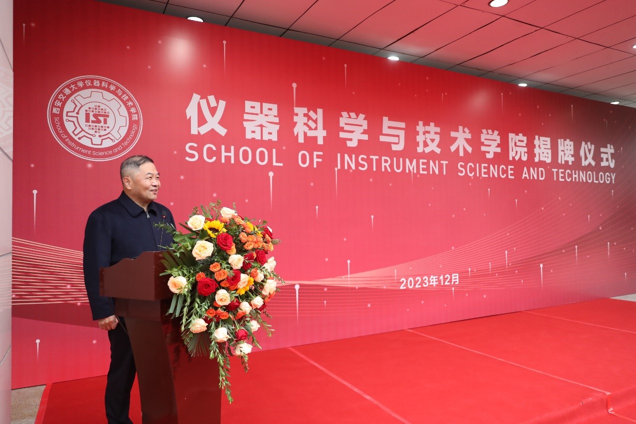校友房建成代表兄弟院校讲话。他表示,高端仪器是科研创新的基石,是高端装备制造不可或缺的支撑,西安交大近年来发展迅速,为成人导航