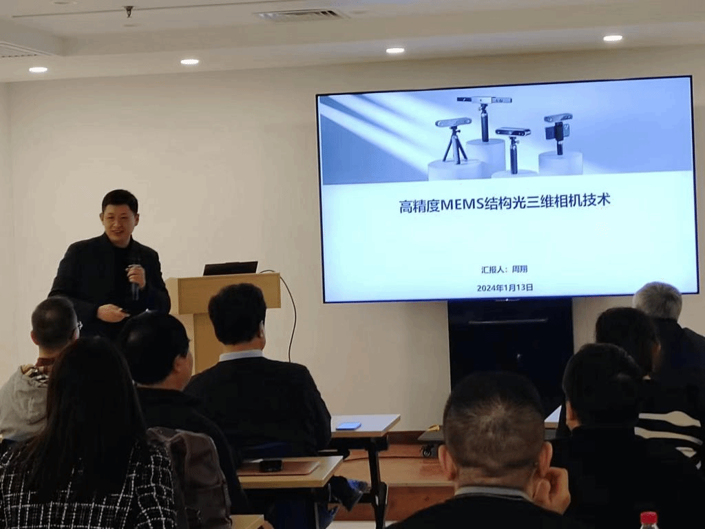 彭年才做“精密生物检测和分子诊断仪器研制和产业化应用”的学术报告,乐开端做“物联网技术应用研究”的学术报告,周翔做“高精度MEMS结构光三维相机技术”的学术报告,王琛英做“微纳米几何量标准物质的可控制备及溯源研究”的学术报告,陈瑶做“芯片化原子自旋器件与Penning离子阱量子精密测量研究”的学术报告。