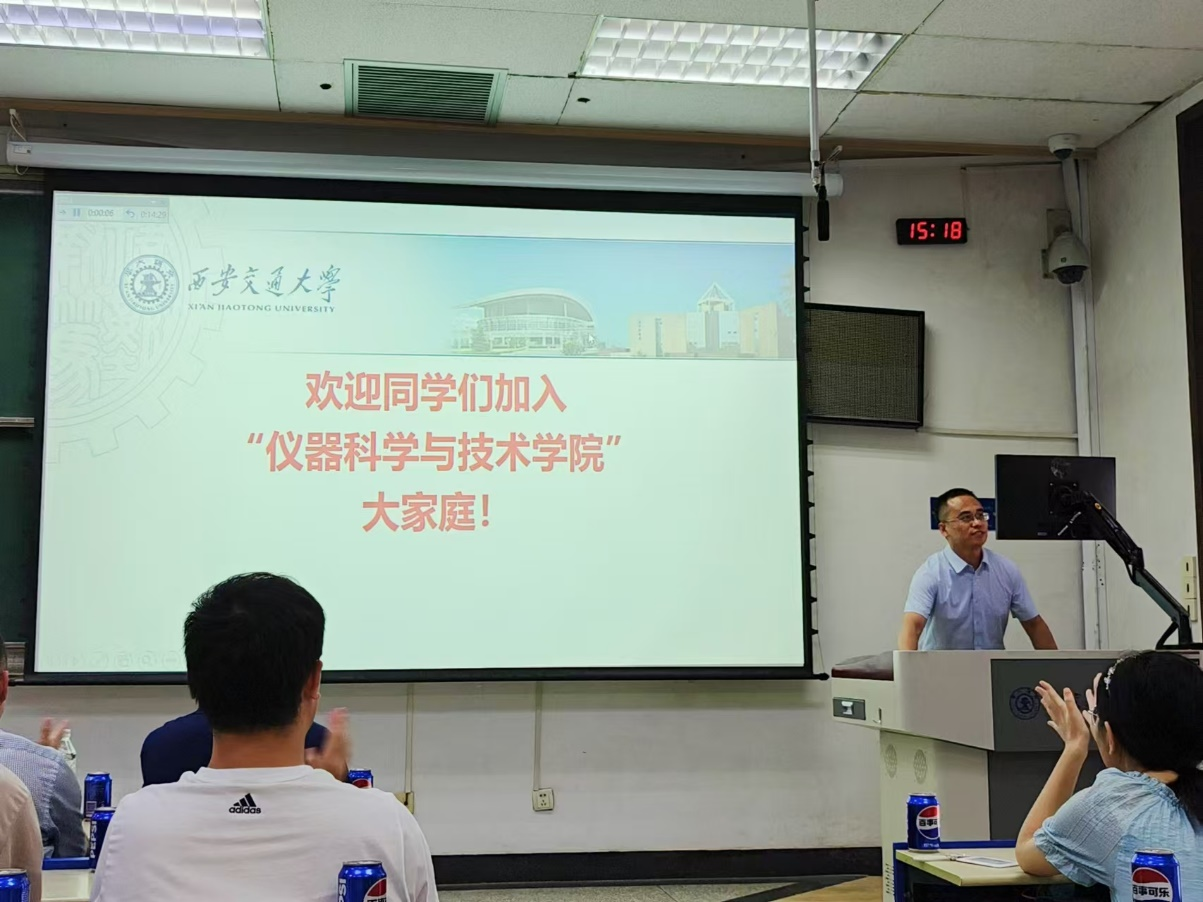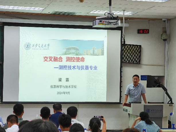 景蔚萱副院长作为教师代表发言,建议同学们做到“理论联系实际”,坚持创新,同时注意自我调节,努力学习、健康生活。梁霖系主任以“交叉融合,测控使命”为主题,对测控专业培养目标、课程体系设置进行详细解读。