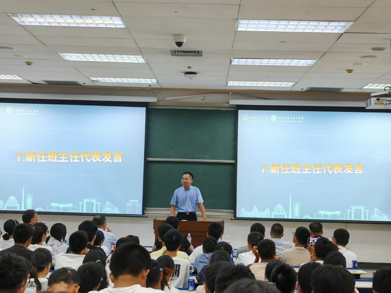 新任班主任代表张传禹老师鼓励同学们坚信自己并勇于探索未知领域。他表示,班主任老师将与同学们共同学习,陪伴大家成长。