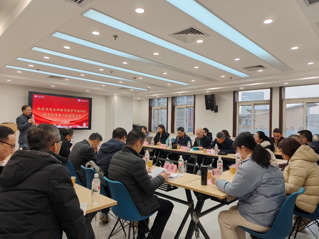 王秋旺处长介绍了本次入院检查的目的和意义,他强调,此次检查是对学院本科教育教学质量的全面检验,旨在发现问题、总结经验、推动改革,持续提升人才培养质量。希望学院进一步凝练办学特色、完善教学质保体系,提升教育教学水平,更好地完成立德树人根本任务。