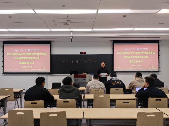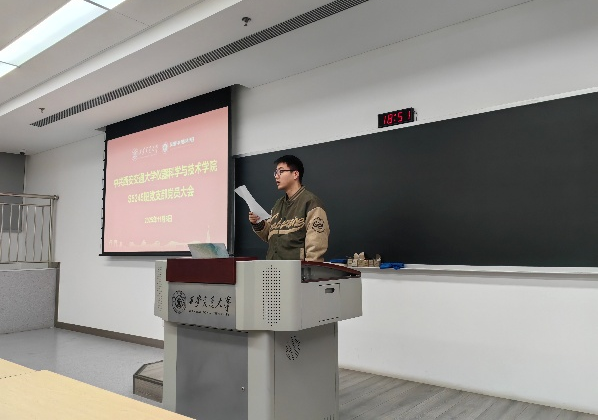 党员大会结束后,学院党委副书记汤晓君教授代表学院党委向全体2025级研究生新生党员讲话,勉励各个党支部发挥模范先锋作用,扎实推进作风建设、党建学习和党员发展,认真组织好党支部活动,以党支部为抓手,塑造良好的班风和学风。